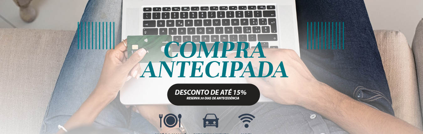 Oferta promocional para reservas feitas com até 30 dias de antecedência, não acumulativas com outras ofertas. A hospedagem de 01 criança de até 06 anos é considerada desde que o apartamento comporte a quantidade de pessoas informada. Acima de 6 anos é cobrado como adulto. Acomodamos crianças de até 1 ano em berço (quantidade limitada) sob solicitação previa, em categoria superior ou suíte. Crianças acima de 1 ano serão acomodadas em sofá cama localizado na antessala.. Café da manhã e internet wireless cortesia para os hóspedes. Estacionamento não incluso, custo de R$28,00 ao dia. Pagamentos via cartão de crédito poderão ser parcelados em até 5 vezes sem juros com valor mínimo da parcela de R$200,00. Aceitamos PIX e todos os cartões de crédito. |